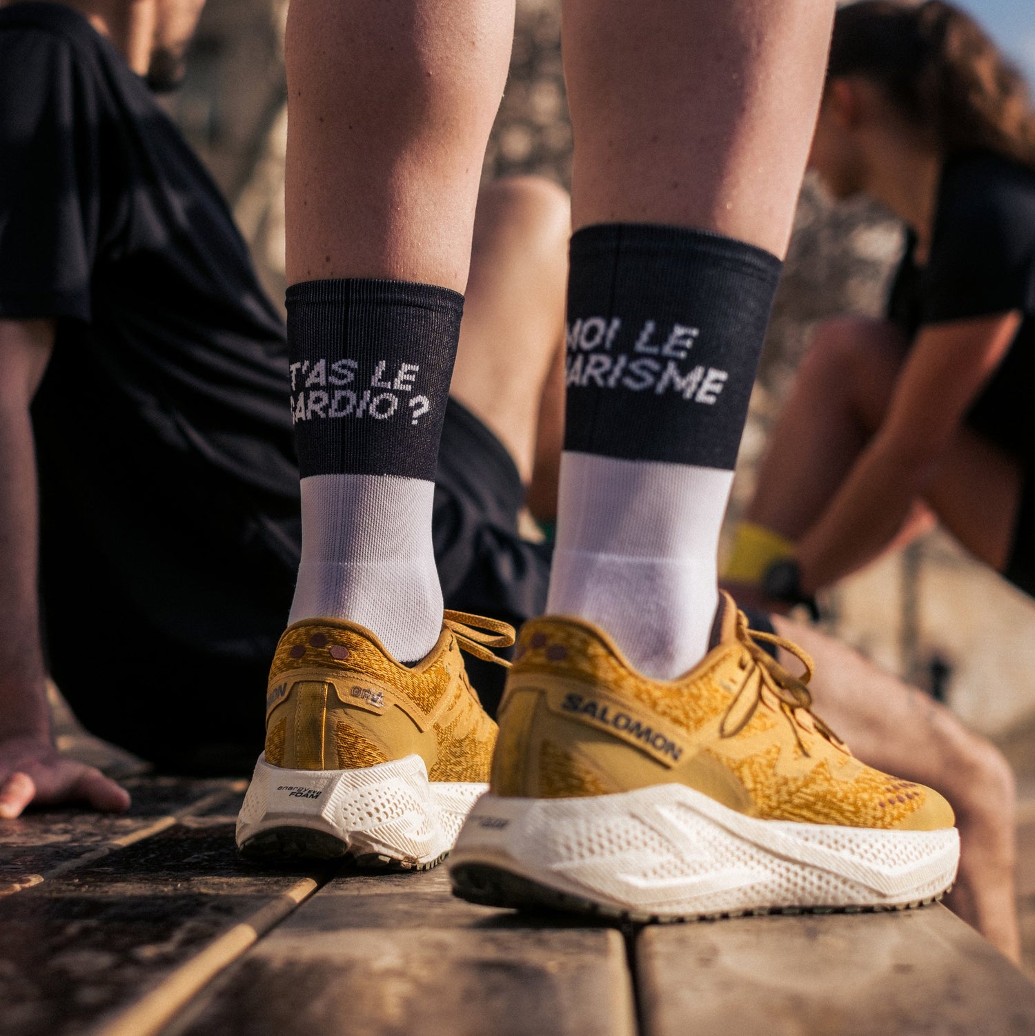 Par contre, sur la qualité, on ne blague pas. Pas d'import douteux ici. Nos chaussettes sont tissées en France, dans le Limousin. Maille piquée, renforts talons et pointes en bouclette. C'est du matos pro, même si tes performances restent amateures.